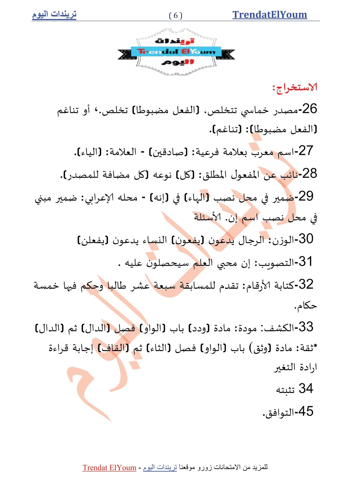 | نموذج إمتحان اللغة العربية (إجابة الأستخراج) |